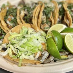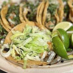 First and foremost the service here is incredible, very patient with our large family group while ordering. Also the food came out very quickly and hot and was delicious! I had the Al pastor tacos and the tilapia taco which were both delish and came with grilled onions (yum). Also the gentleman helping us brought out complimentary chips and salsa, as well as hot chocolate to go with the mole which was incredible! Great value for food as well. Would recommend!